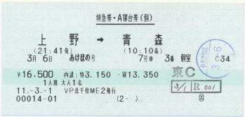 | 10:10 | 青森 | 11:05 | はつかり14 | 1014M | |